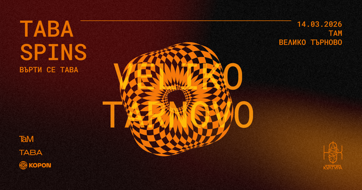 Откриваме сезон 2026 ТаМ на 14 март с събитието "Върти се TABA". Нашите приятели от TABA record store ни вкарват в света на винила и съвременната независима музика със следобедно Винил Експо, последваща дискусия и клубна нощ. Вход: 10 евро / 5.11 лв. We are opening season 2026 TaM on March 14th with TABA spins event. Our friends from TABA record store invite us into the vinyl world with an afternoon Vinyl Expo, a discussion afterwords and a club night at the end. Entrance: 10 EUR / 5.11 BGN.